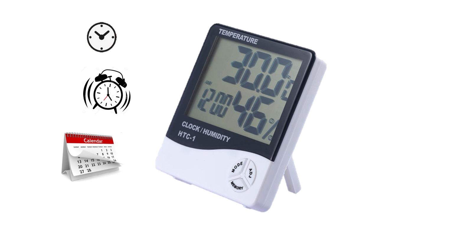 Цифровой термометр с ЖК-дисплеем, измерителем влажности и часами НТС-1